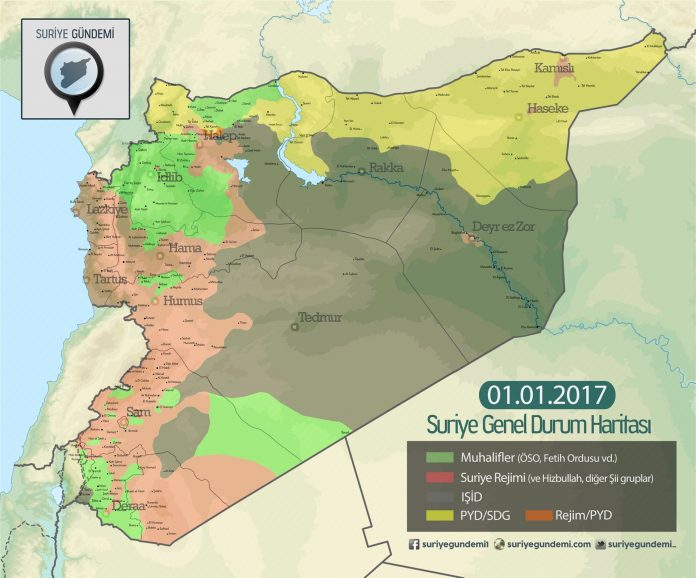 1 Ocak 2017 – Suriye son durum haritası (Harita: suriyegundemi.com)